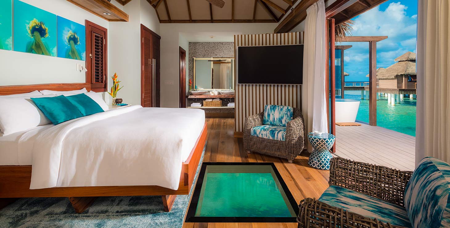 把牙买加的Montego Bay Sandals放在第一位,当然是因为它独一无二的水上树屋,与加勒比果冻色大海的亲密接触,在海上的漂浮早餐,接触到大海只需要5秒钟!树屋房间内有透明地板,不需要出门就能欣赏到清澈海洋!
